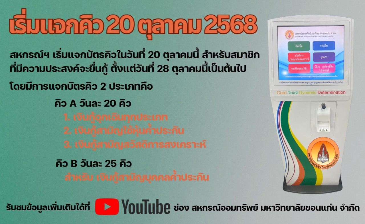 เปิดรับบัตรคิวสำหรับยื่นกู้สามัญทุกประเภท