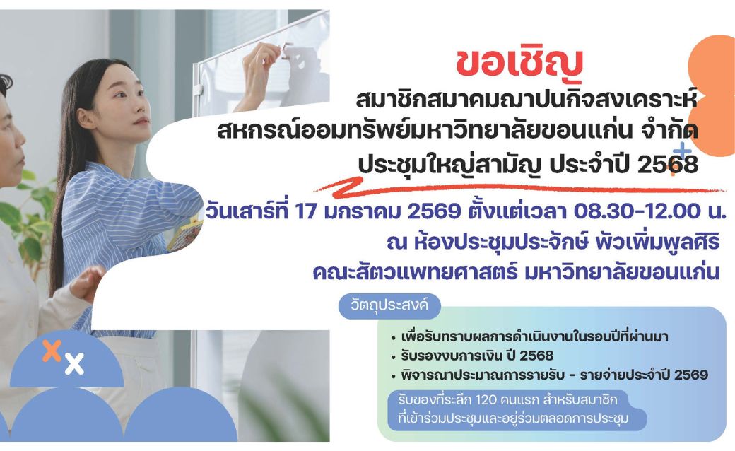 ขอเรียนเชิญสมาชิกเข้าร่วมประชุมใหญ่สามัญประจำปี 2568