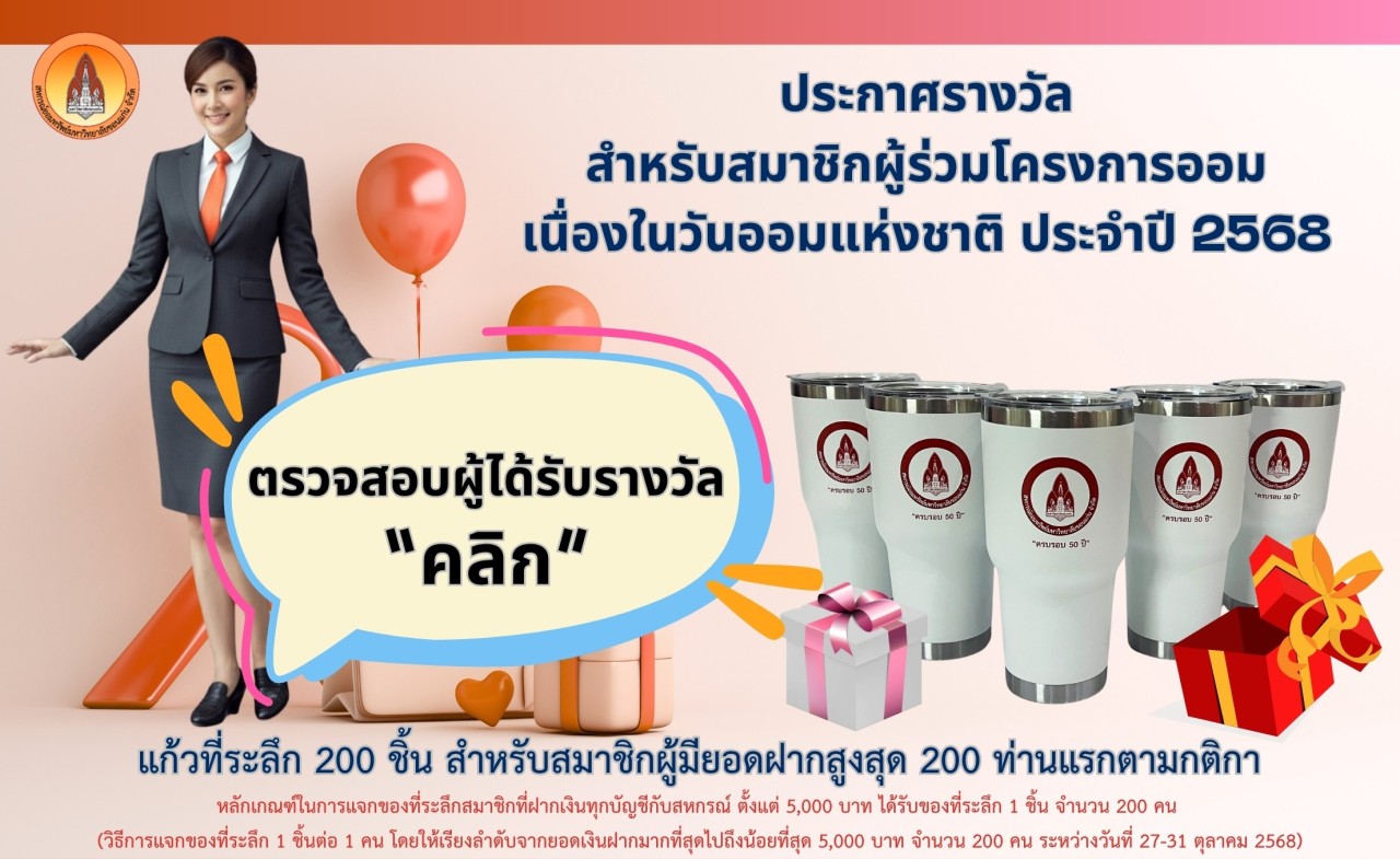 ประกาศผลผู้โชคดีรับรางวัลของที่ระลึก โครงการส่งเสริมการออม เนื่องในวันออมแห่งชาติ ประจำปี 2568