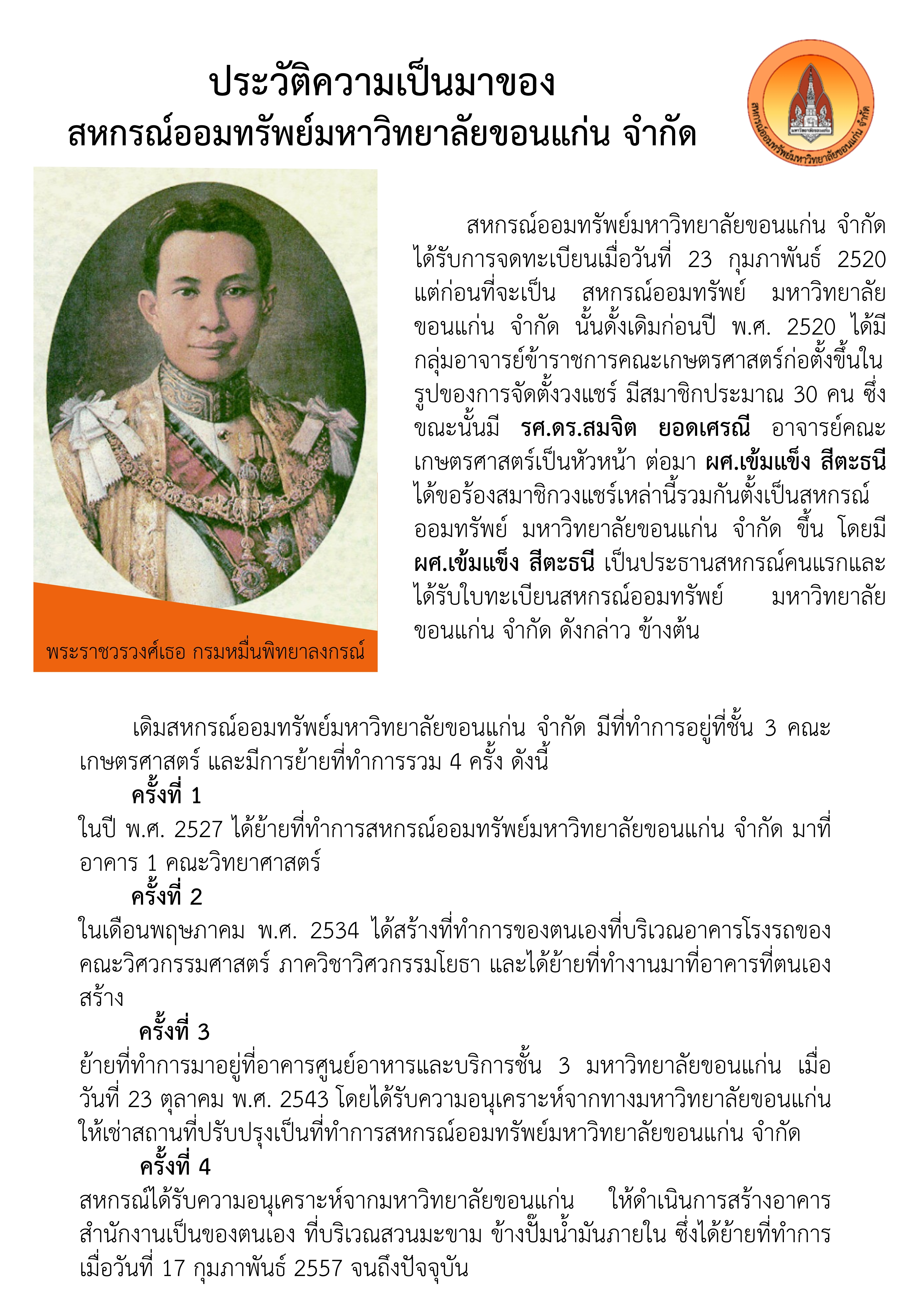 ประวัติความเป็นมาของสหกรณ์ออมทรัพย์มหาวิทยาลัยขอนแก่น จำกัด