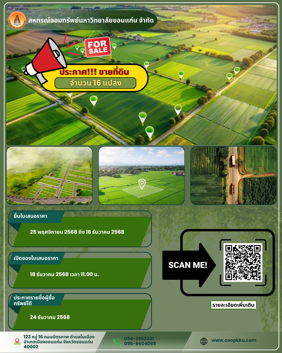ดาวน์โหลดคลิก ประกาศ ฉบับที่ 47/2568 เรื่อง ขายที่ดินสหกรณ์ออมทรัพย์มหาวิทยาลัยขอนแก่น จำกัด