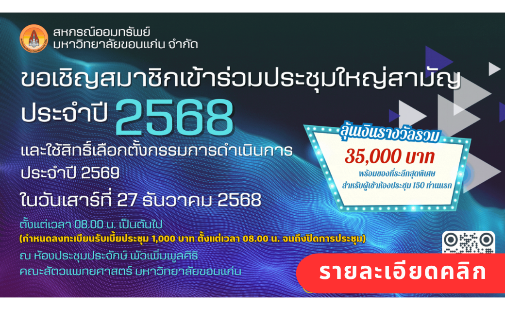 ขอเรียนเชิญสมาชิกเข้าร่วมประชุมใหญ่สามัญประจำปี 2568